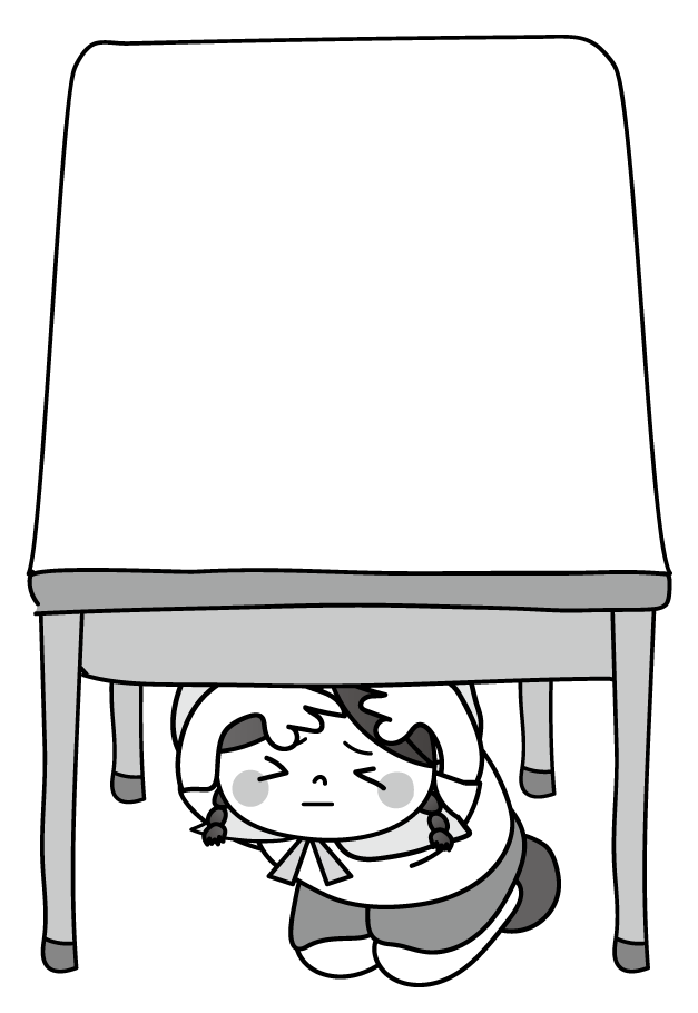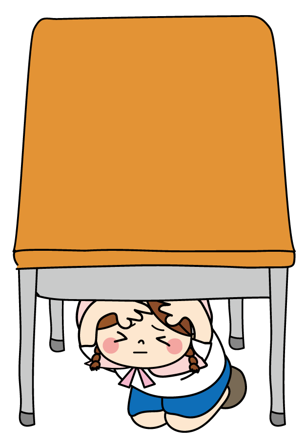 地震 災害 避難 訓練 机の下 頭巾