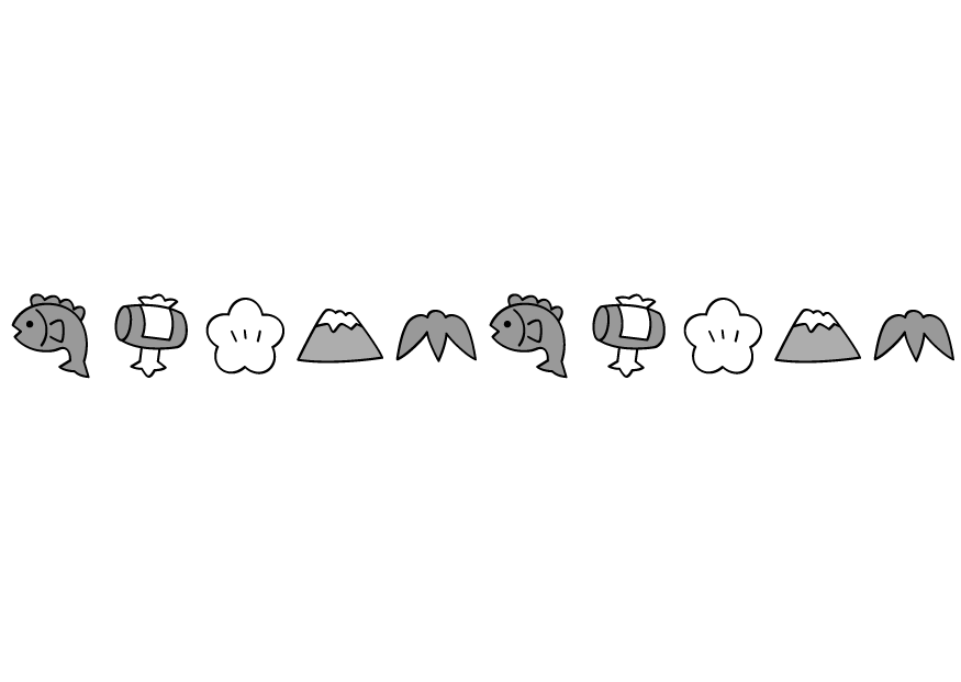 お正月 梅 富士山 小槌 鯛 笹