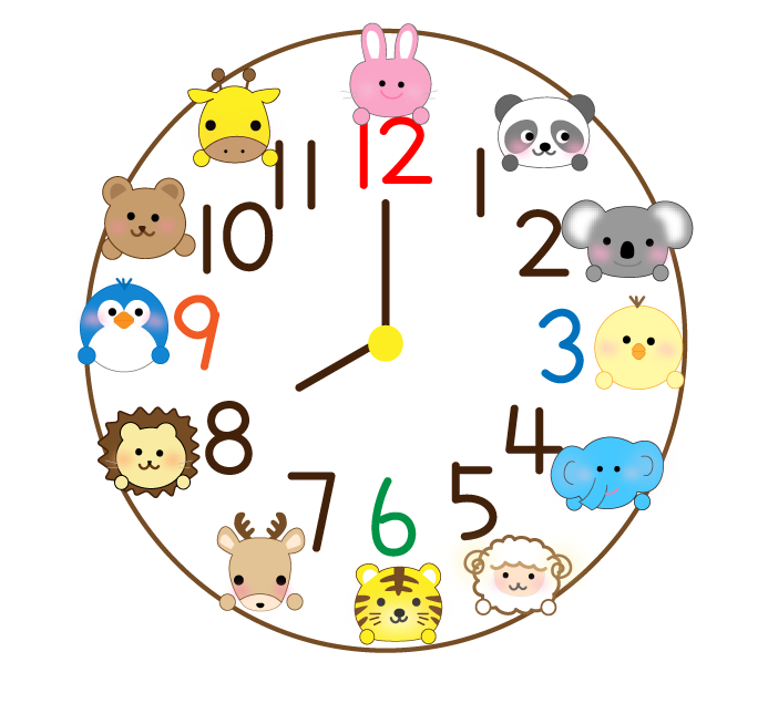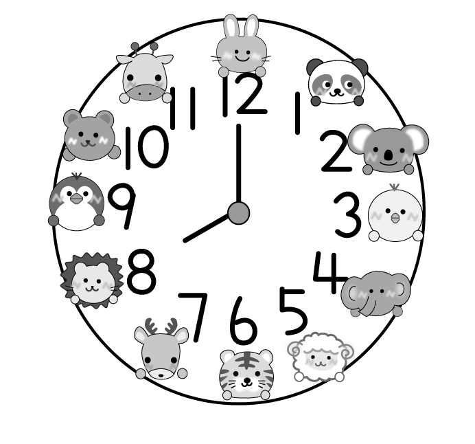 動物 うさぎ トラ ライオン ひよこ ペンギン しか コアラ きりん ひつじ クマ パンダ ぞう 8時