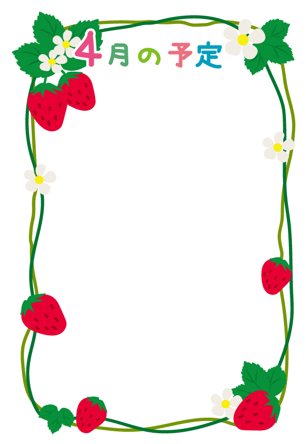 4月 春フレーム 春のイベント 苺 イチゴ いちご 予定
