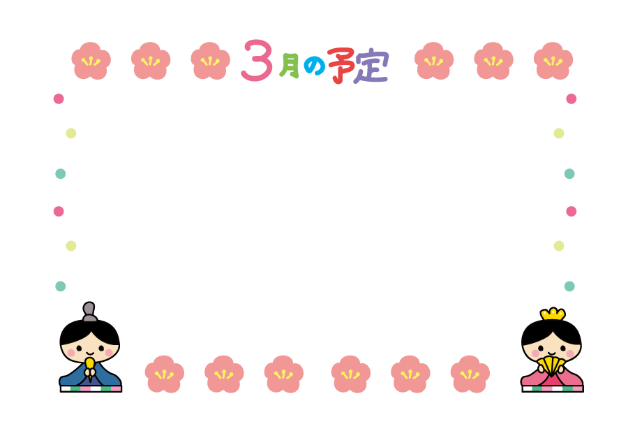 3月 予定 お雛さま 桃の節句 もも おひなさま