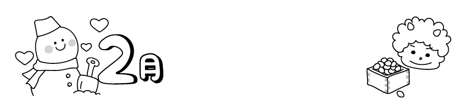 せつぶん 節分 鬼 豆まき 2月イベント バレンタイン 2月のえんだより 2月園だより 雪だるま もちつき えんだより