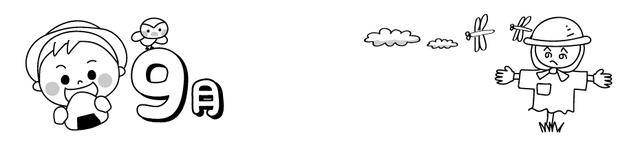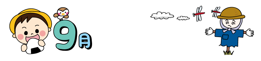 すずめ 園だより 9月の園だより 案山子 かかし 稲刈り 収穫 えんそく おにぎり 食欲の秋 秋フレーム 9月