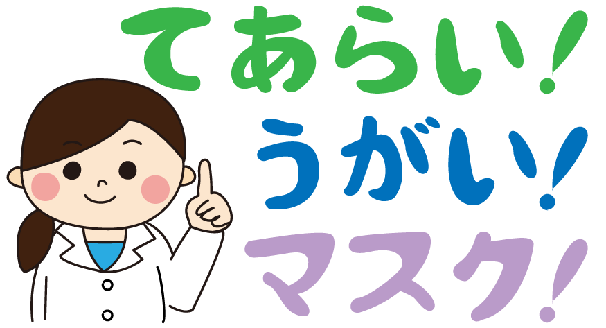 てあらいうがいますく テアライウガイマスク 手洗 うがい マスク 白衣 ほけん 風邪 かぜ インフルエンザ けんおん 病院 保健特集 予防 コロナ 感染 自宅待機 ほけんだより 保健だより 保健所
