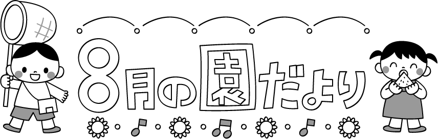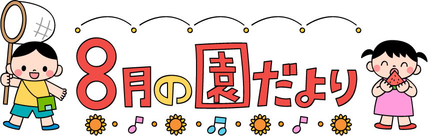 園だより 8月 虫取り 虫取りかご すいか スイカ 西瓜 男の子 女の子 むし 虫 ムシ 夏フレーム