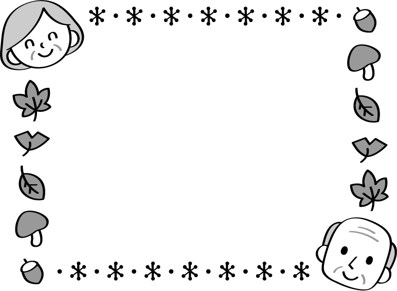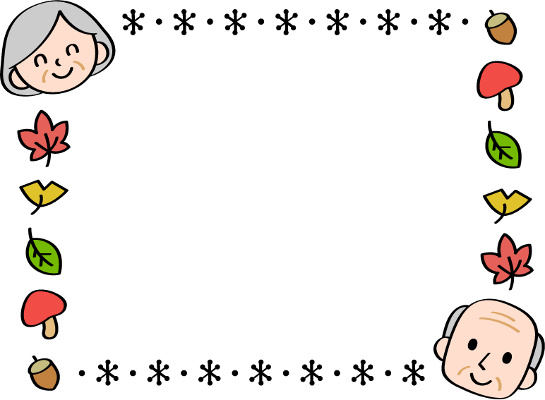 敬老の日 おじいちゃん おばあちゃん 落葉 はっぱ 紅葉 どんぐり ドングリ きのこ キノコ 茸 イチョウ 福祉 秋のイベント 秋フレーム