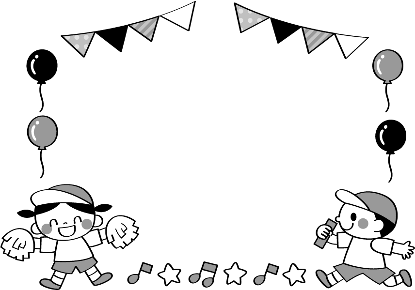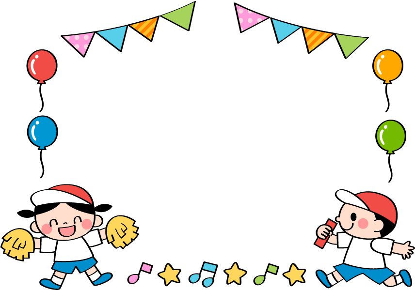 うんどうかい スポーツ特集 リレー 応援 ポンポン バトン 風船 ふうせん ガーランド 星 音符 秋フレーム