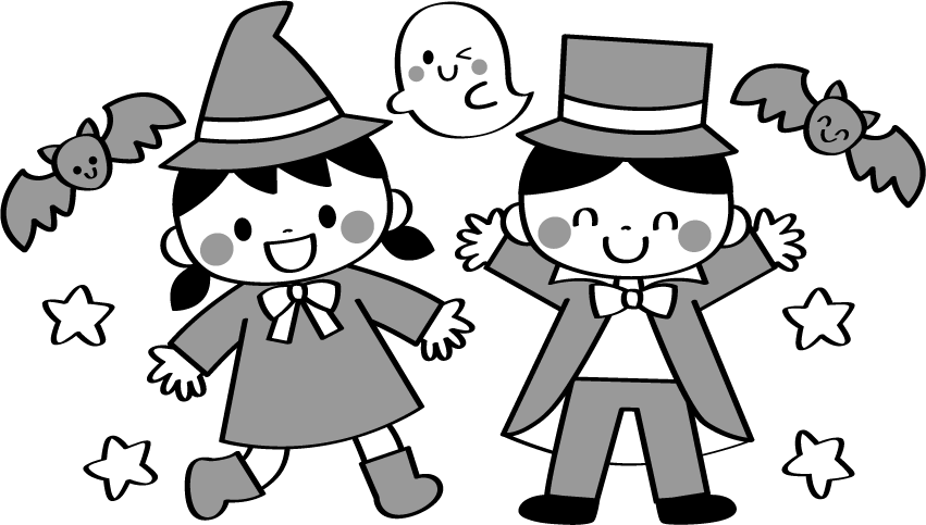 男の子 女の子 魔女 ドラキュラ 星 コウモリ おばけ オバケ ハロウィン