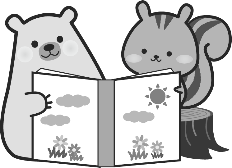掲示板 手紙 お便り メッセージ 本読み クマ リス 読書 絵本 読書の秋 読書週間 絵本の日
