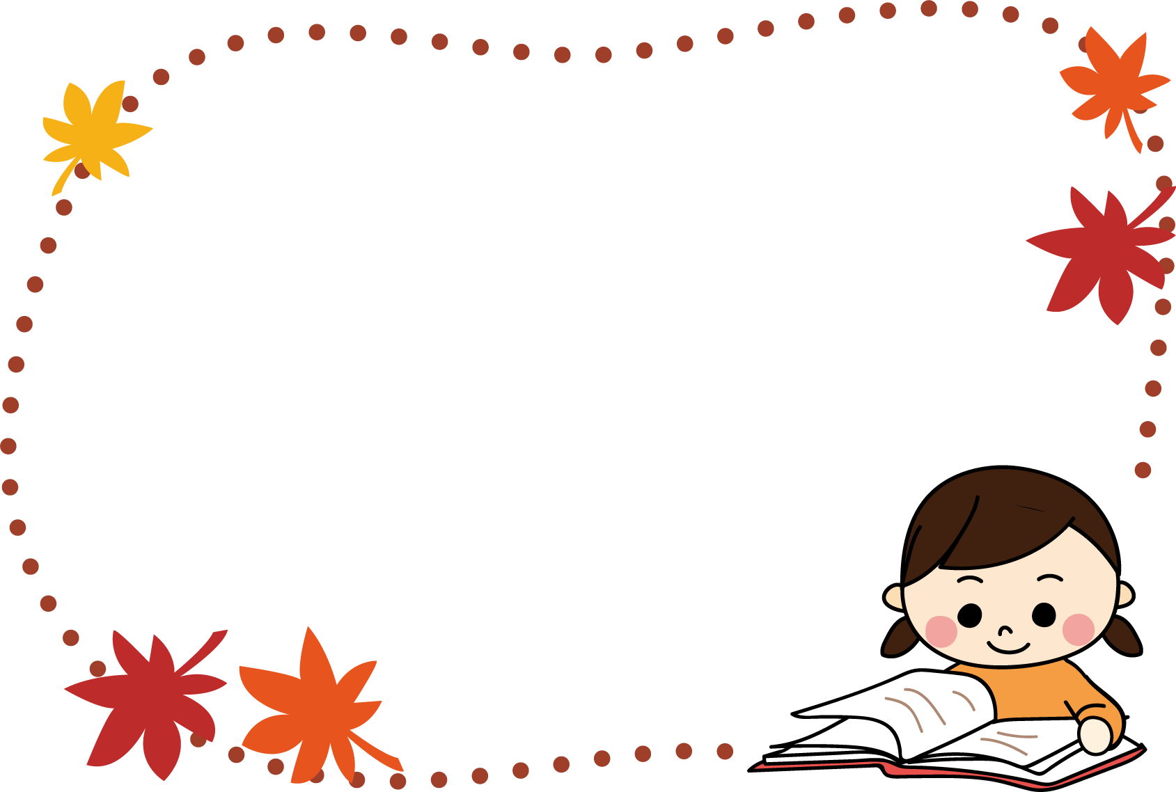 読む 11月 10月 9月 おちば 秋フレーム 紅葉 もみじがり もみじ 読書 読書の秋 本