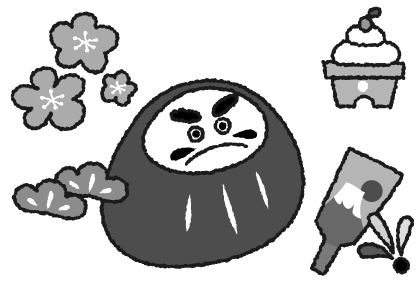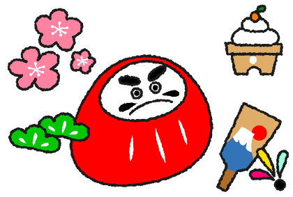 お正月 だるま 梅 鏡餅