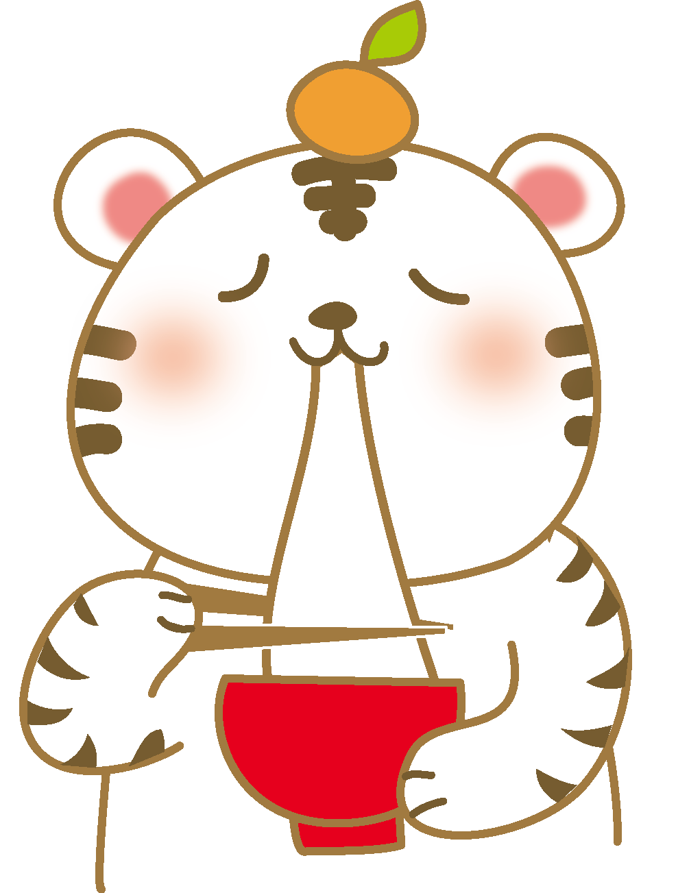 HAPPY NEW YEAR お餅 トラ おぞうに 食べる 動物 年賀状 2022 とら 虎 お正月 梅 もち 年賀 お正月飾り
