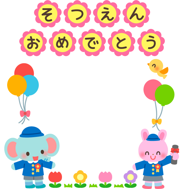 卒園 卒園式 花 ふうせん 風船 リボン りぼん 動物 うさぎ ウサギ ぞう ゾウ 象 卒業証書 チューリップ とり 鳥 春フレーム