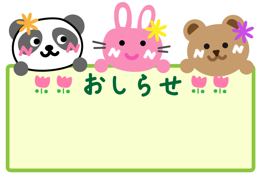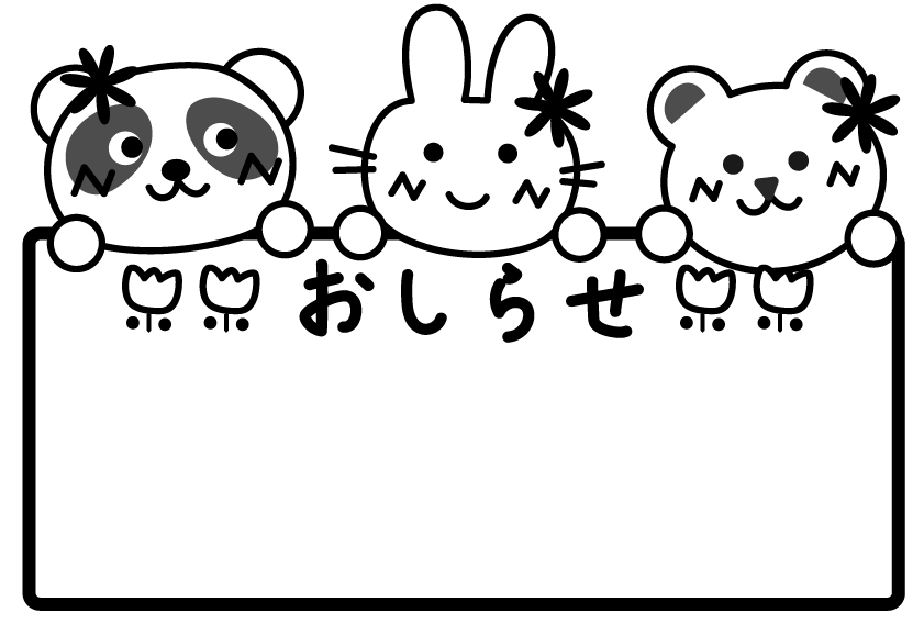 園だより お便り おしらせ ボード メッセージ 枠 連絡 くま うさぎ ぱんだ パンダ ウサギ クマ 動物 チューリップ 花 春フレーム