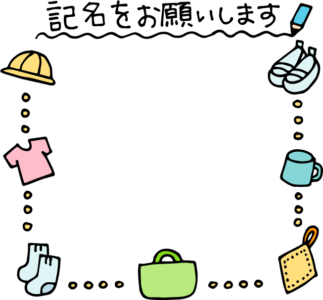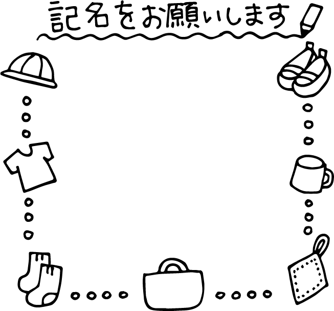 記名 名前 おねがい お願い 服 洋服 Tシャツ コップ タオル ハンカチ くつ 靴 靴下 上履き かばん 鞄 トートバッグ ぼうし 帽子 入園