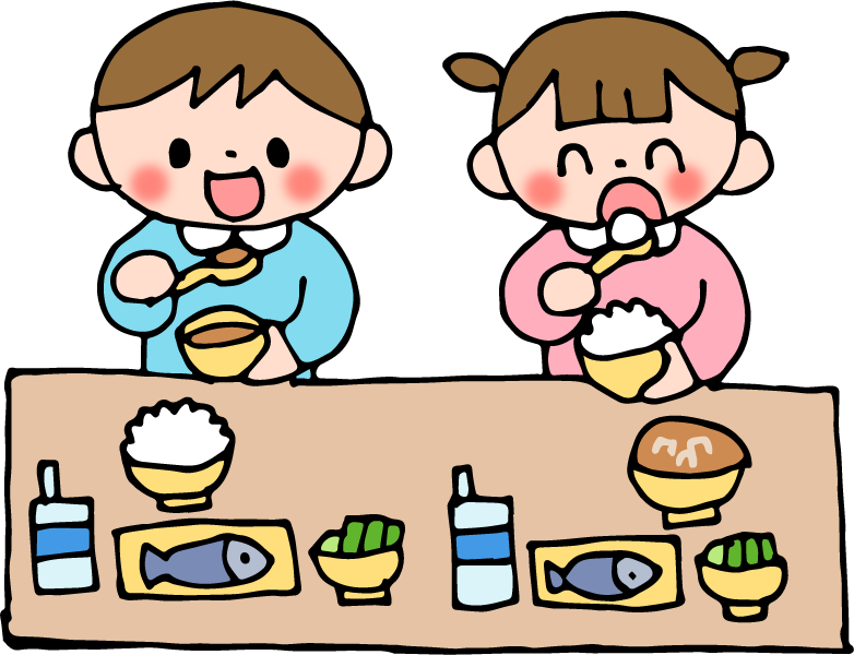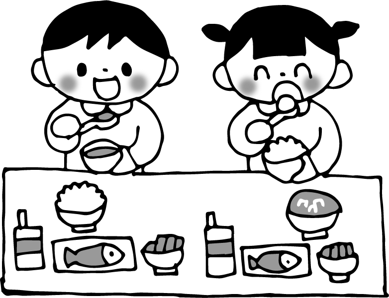 食育 食育だより 料理 食べ物 給食 牛乳 味噌汁 みそ汁 さかな サカナ 魚 野菜 ご飯 米