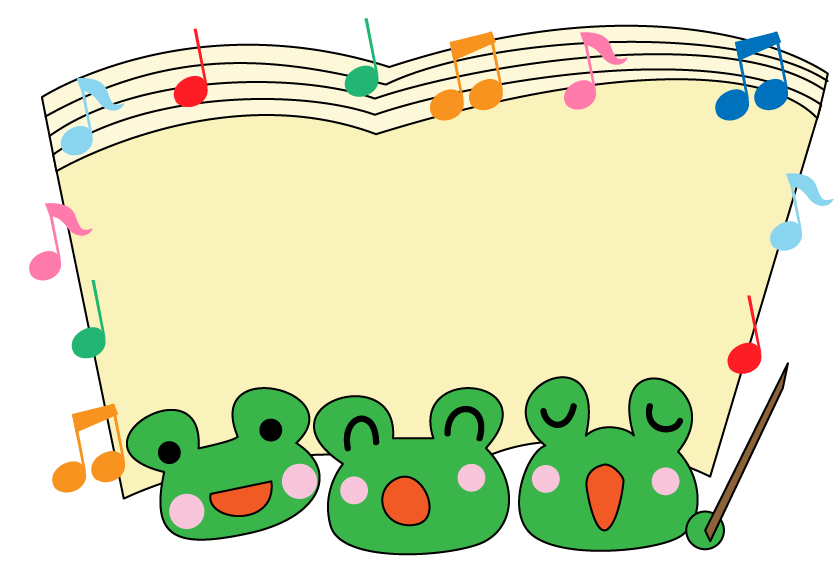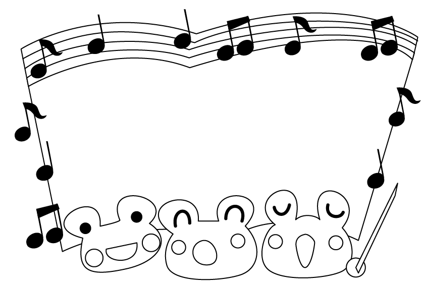 かえる お便り 園だより 音符 合唱 カエルの合唱 うた 夏フレーム