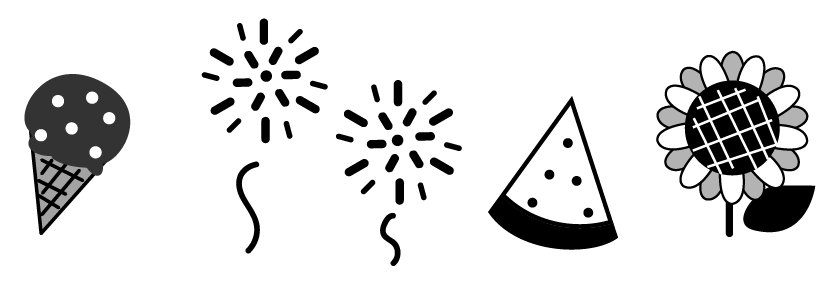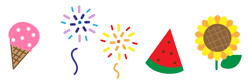 ひまわり ヒマワリ 向日葵 アイスクリーム アイス 花火 打ち上げ花火 すいか スイカ 西瓜 ゲーム・あそび