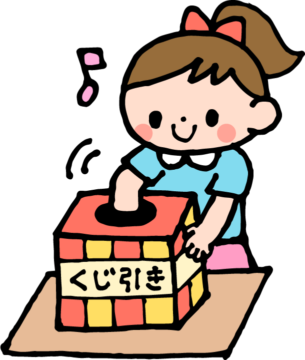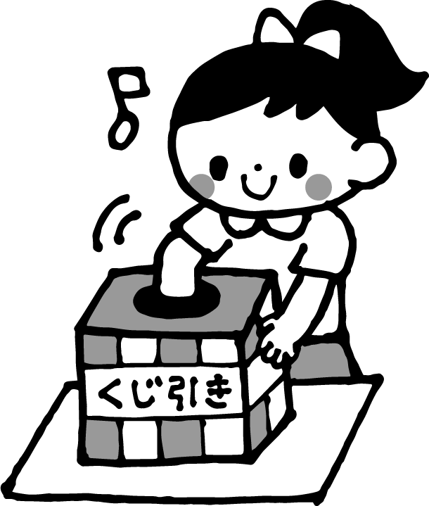 くじ引き くじびき あたり 当たり アタリ はずれ 外れ ハズレ 抽選箱 祭り 夏祭り 園児 女の子 音符 ゲーム・あそび レトロゲーム