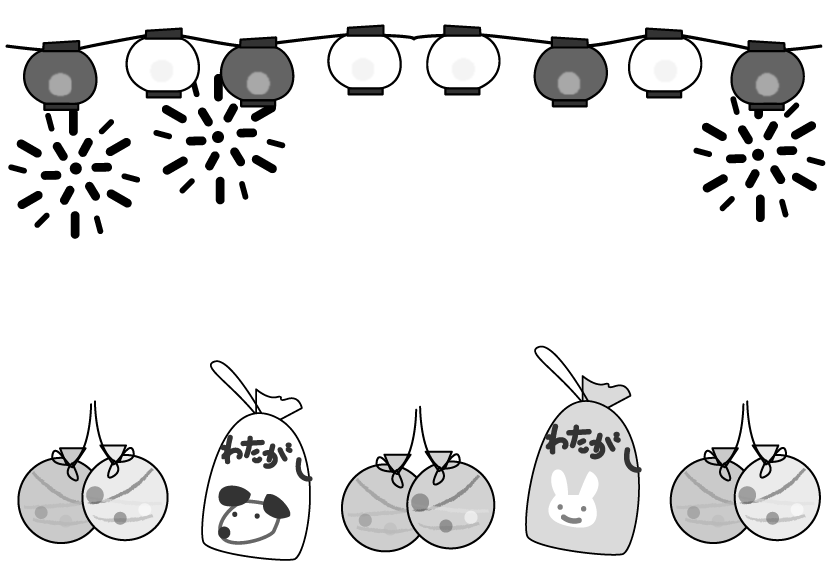 夏のイベント お祭り 綿菓子 ヨーヨー 提灯 花火 ちょうちん はなび わたあめ フードコート イベント ゲーム・あそび 夏フレーム 屋台スイーツ プールゲーム