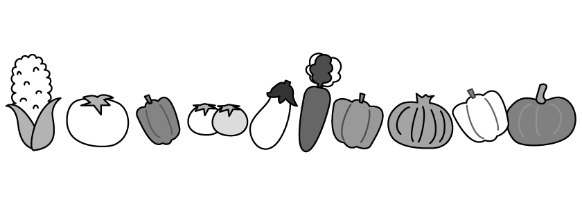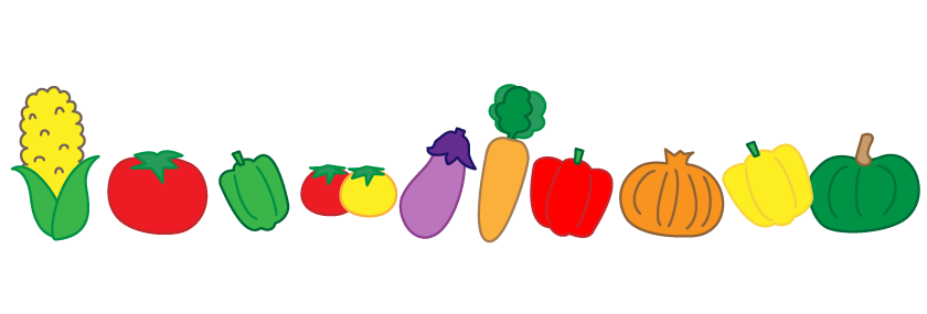 食育 ピーマン パプリカ にんじん 人参 ニンジン 玉ねぎ ナス なすび コーン とうもろこし プチトマト トマト かぼちゃ 野菜 夏ライン 野菜マルシェ
