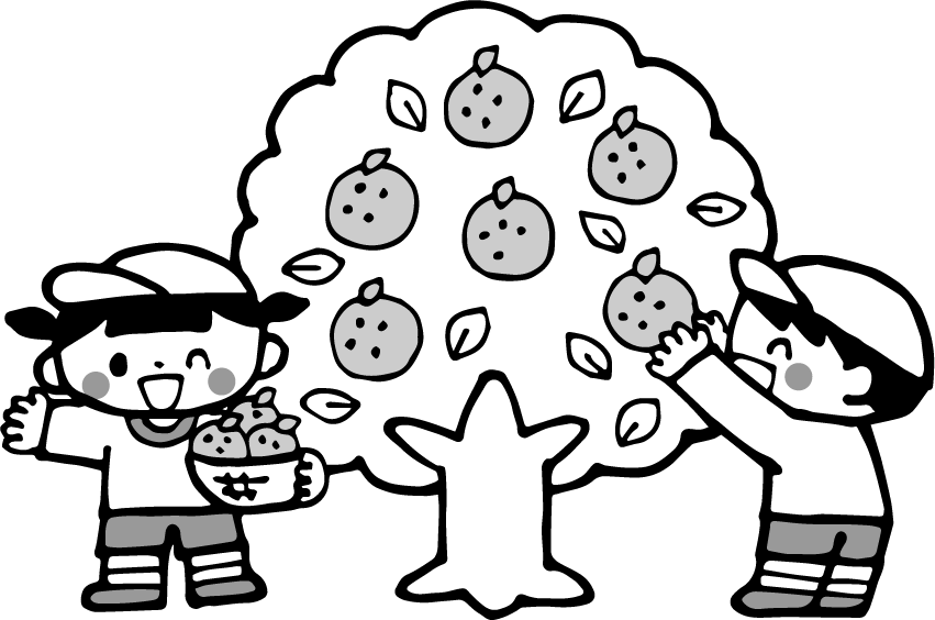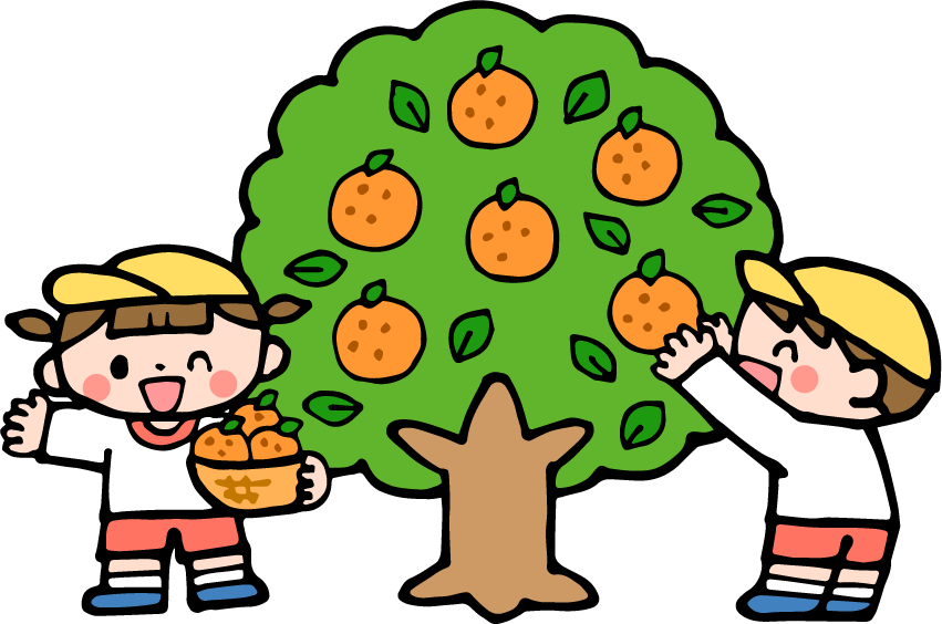 みかん狩り ミカン狩り みかん ミカン 果物 フルーツ 食べ物 遠足 男の子 女の子 園児 体操服 帽子 木