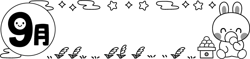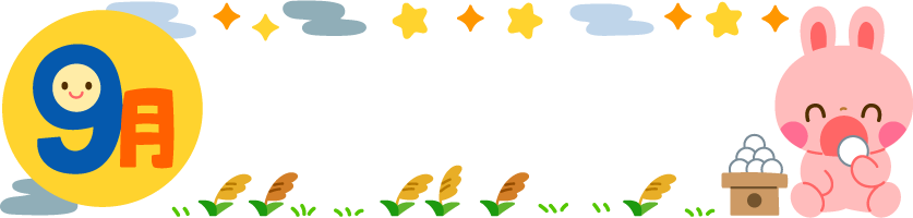 9月 園だより お月見 団子 お団子 食べ物 お菓子 スイーツ ススキ 葉 キラキラ 星 雲 くも 月 うさぎ ウサギ 兎 動物 和菓子 秋フレーム