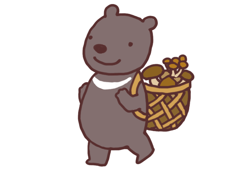 キノコ狩り きのこ狩り 熊 くま 動物 きのこ キノコ 収穫
