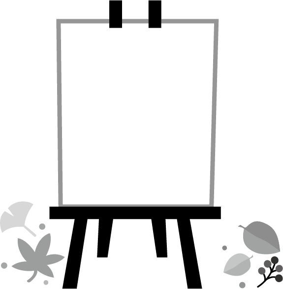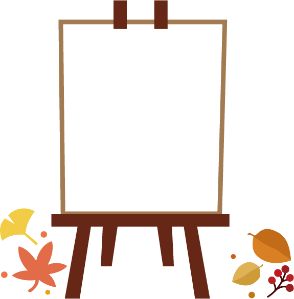 掲示板 手紙 お便り メッセージ 絵画 筆 絵具 スケッチ 葉っぱ 枯れ葉 イーゼル