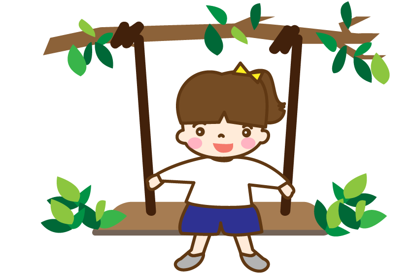 森のブランコ 女の子 遊具 園だより お便り 木 葉っぱ こども 外遊び