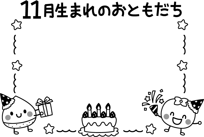 帽子 秋フレーム 栗 クリ くり フルーツ 果物 食べ物 柿 かき カキ 星 クラッカー プレゼント 苺 イチゴ いちご ロウソク ケーキ 誕生日ケーキ 誕生日 11月 11月生まれのお友だち 11月生まれのお友達 11月生まれのおともだち