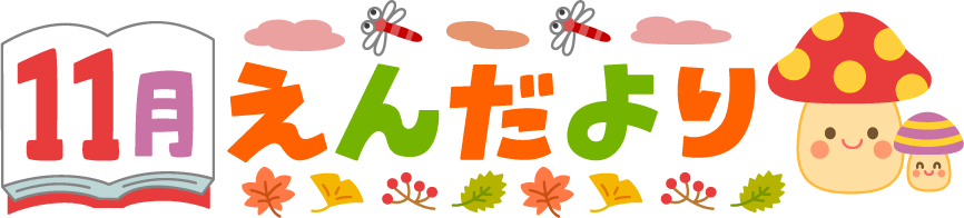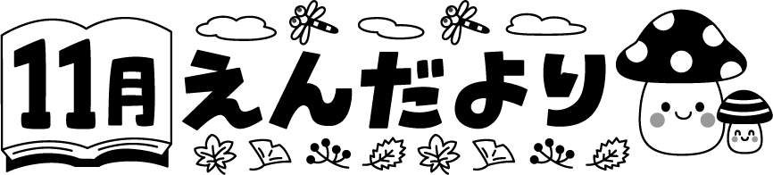 11月 園だより もみじ 紅葉 イチョウ 葉っぱ 葉 木の実 きのこ キノコ 食べ物 食欲の秋 くも 雲 とんぼ トンボ 虫 読書の秋 本 読書 秋フレーム