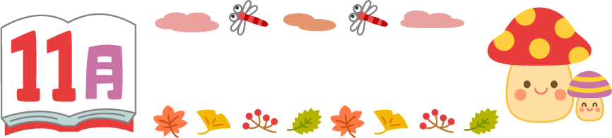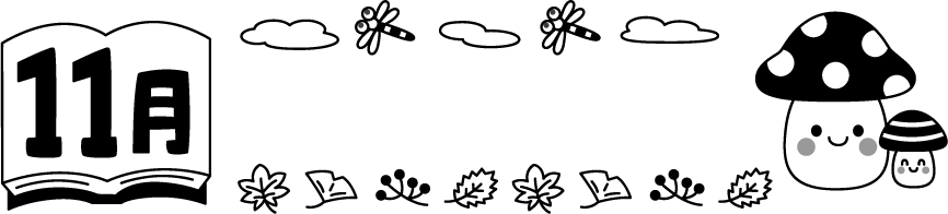 読書 本 読書の秋 虫 トンボ とんぼ 雲 くも 食欲の秋 食べ物 キノコ きのこ 木の実 葉 葉っぱ イチョウ 紅葉 もみじ 園だより 11月 秋フレーム