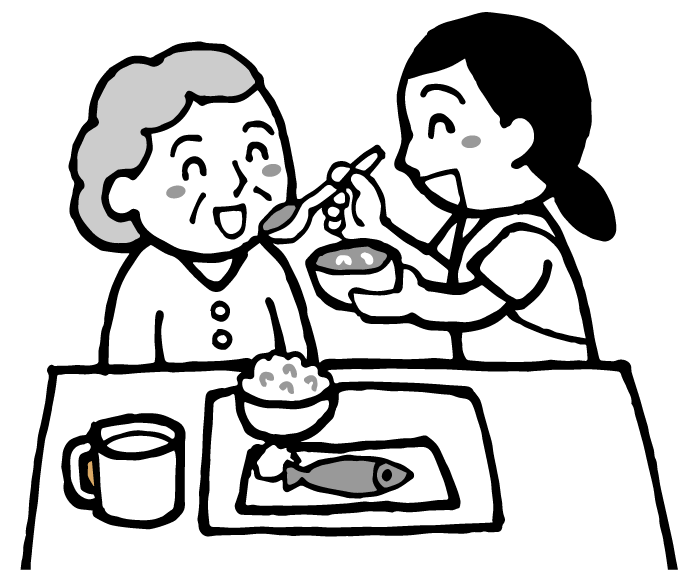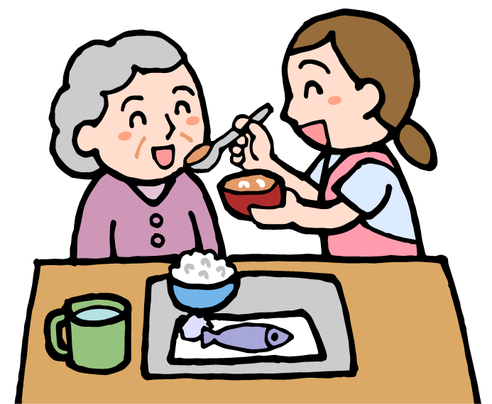 食事 食べ物 ご飯 お米 米 みそ汁 味噌汁 魚 おばあさん おばあちゃん 介護士 ヘルパー 女性 デイサービス 福祉 老人ホーム