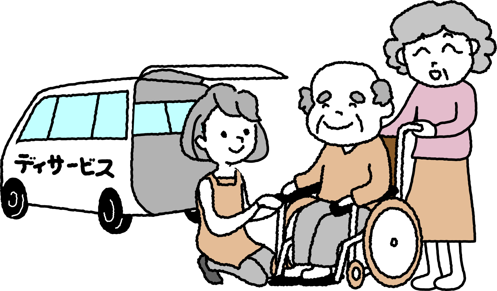 男性 女性 ヘルパー 介護士 おじいちゃん おじいさん イス 椅子 いす 乗り物 デイサービス 車イス 車椅子 車いす 福祉