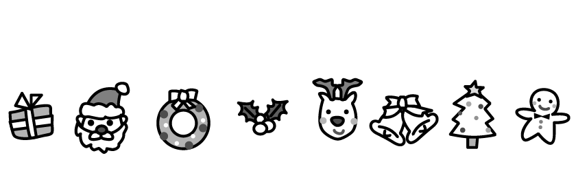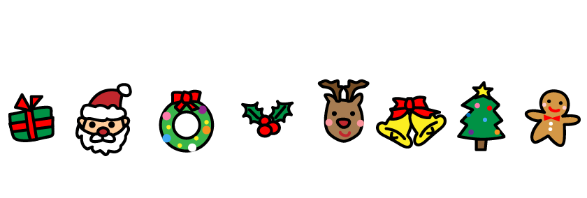 サンタクロース サンタ トナカイ ベル ツリー プレゼント スノーマンクッキー クッキー リース イベント お楽しみ会 えんだより 12月 12月25日 ヒイラギ