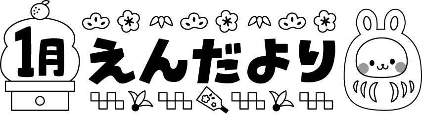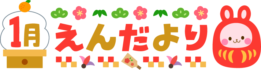 1月 園だより お正月 正月 花 梅 松 羽子板 だるま ダルマ うさぎ 兎 ウサギ 卯 動物 鏡餅