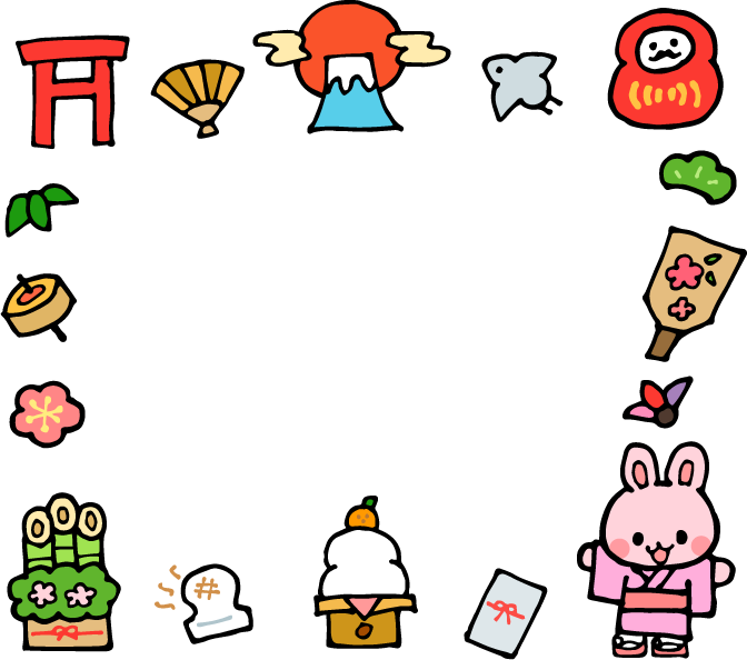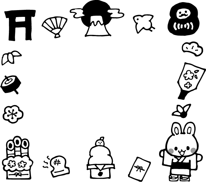 お正月 正月 2023 年賀状 日の出 ご来光 太陽 山 鳥居 扇子 鳥 とり 動物 くも 雲 だるま ダルマ 松 羽子板 羽 遊び うさぎ ウサギ 兎 卯 着物 お年玉 鏡餅 もち 餅 ミカン みかん 果物 フルーツ 食べ物 門松 梅 花 こま コマ 笹の葉 葉
