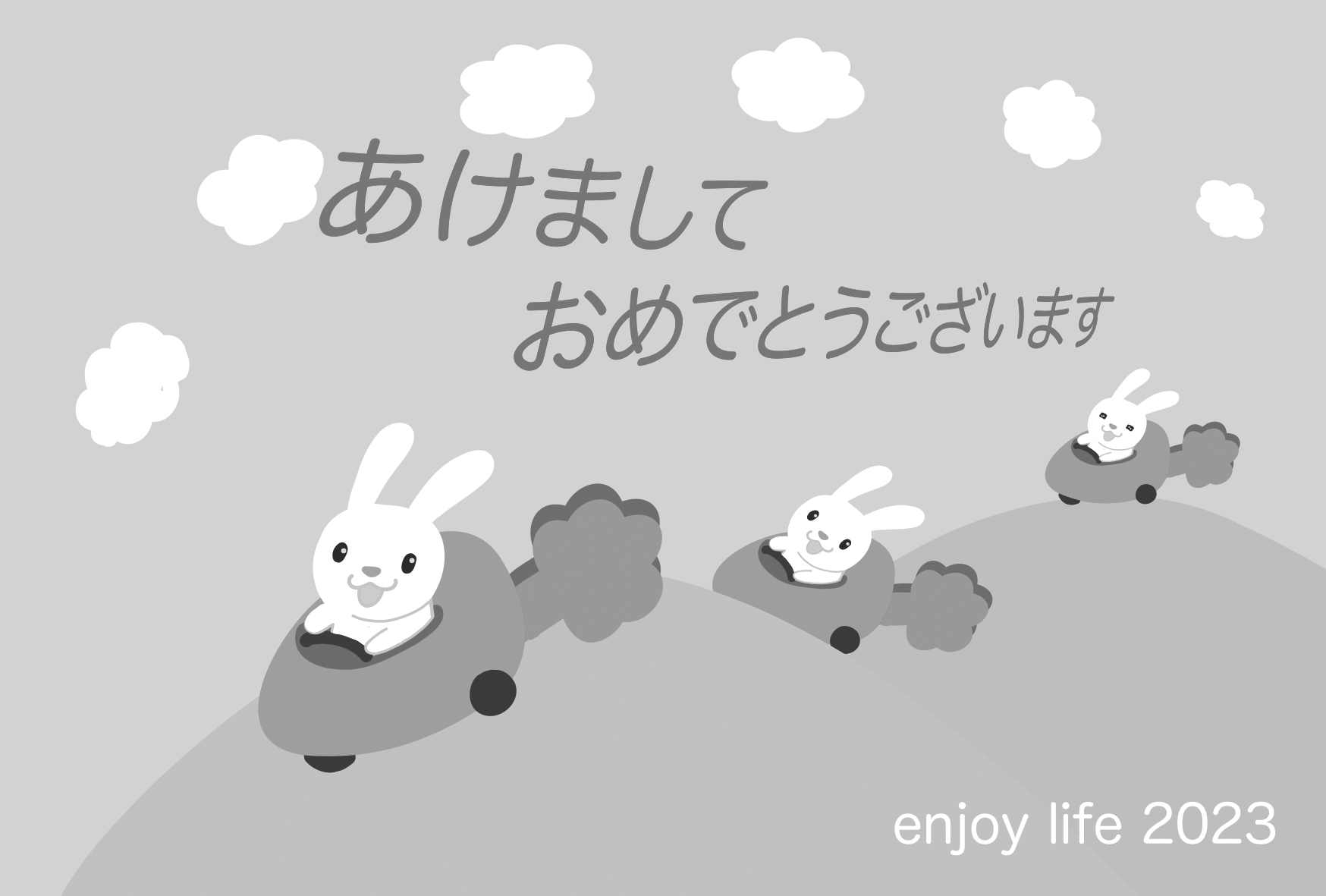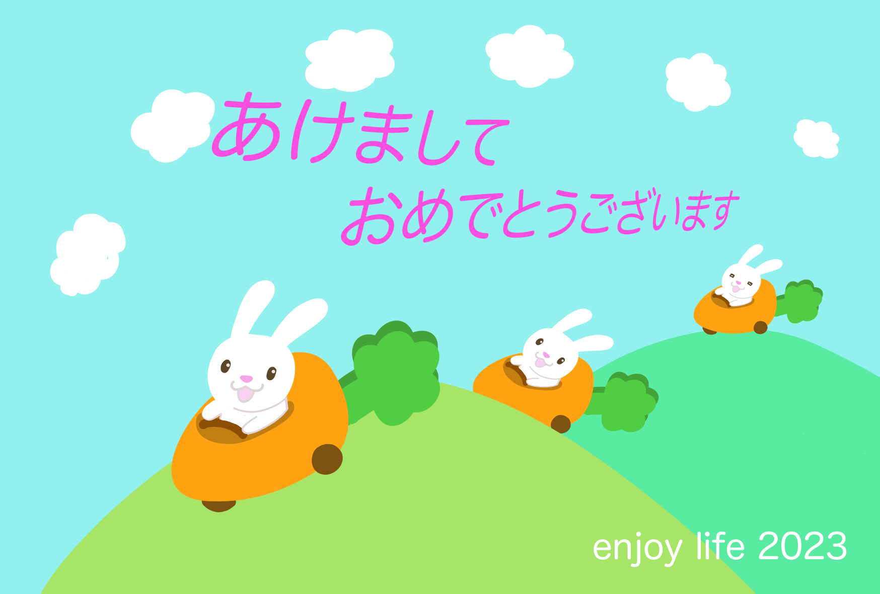 年賀状 ウサギ にんじん ニンジン 2023 新年 挨拶 お便り 山 雲 あけましておめでとうございます