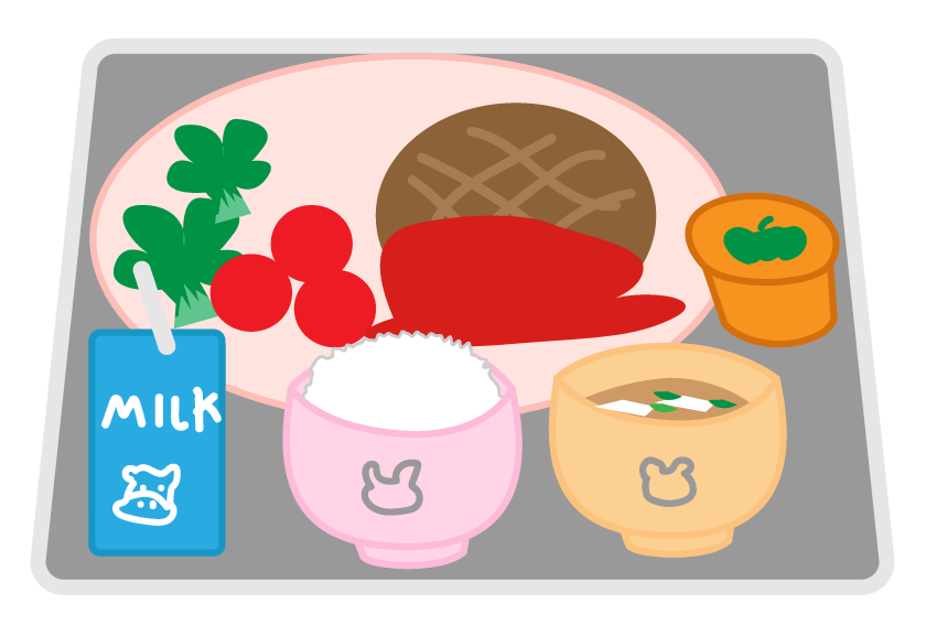ハンバーグ プリン カボチャのプリン ミルク MILK ごはん ご飯 お味噌汁 プチトマト ブロッコリー 食育 お便り 園だより 給食だより
