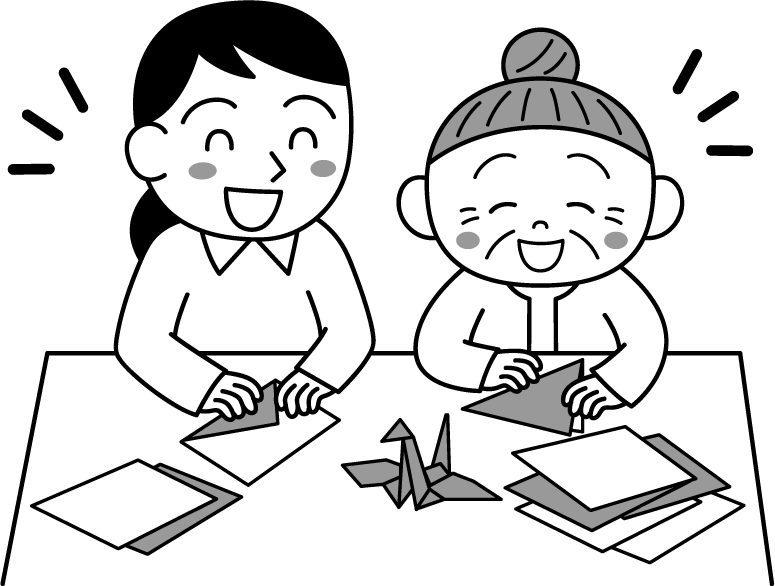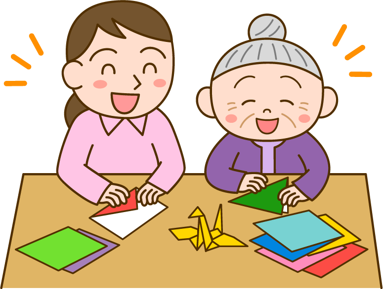 介護施設 デイサービス 老人ホーム お年寄り 老人 高齢者 女性 おばあさん おばあちゃん 介護士 ヘルパー レクリエーション レク 折り紙 折紙 おりがみ つる 鶴 レトロゲーム