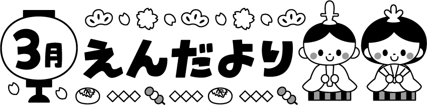 3月 園だより 雛祭り ひな祭り お内裏様 お雛様 桜 さくら 花 三食団子 団子 だんご 餅 お餅 桜饅頭 さくら饅頭 ぼんぼり 松 春フレーム 3月