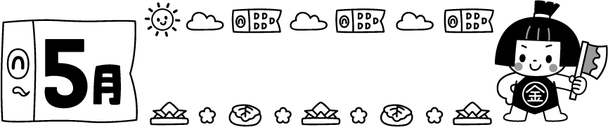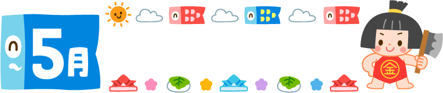 5月 園だより こいのぼり 鯉のぼり くも 雲 太陽 柏餅 餅 お餅 お菓子 和菓子 カブト 兜 花 金太郎 端午の節句 子どもの日 こどもの日 春フレーム