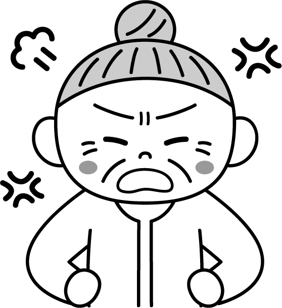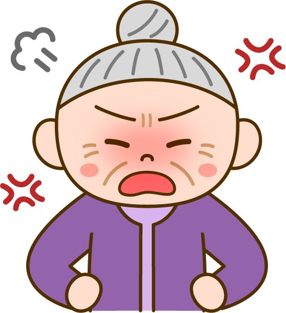 介護施設 デイサービス 老人ホーム お年寄り 老人 高齢者 女性 おばあさん おばあちゃん 怒ってる顔 怒る 怒り 認知症