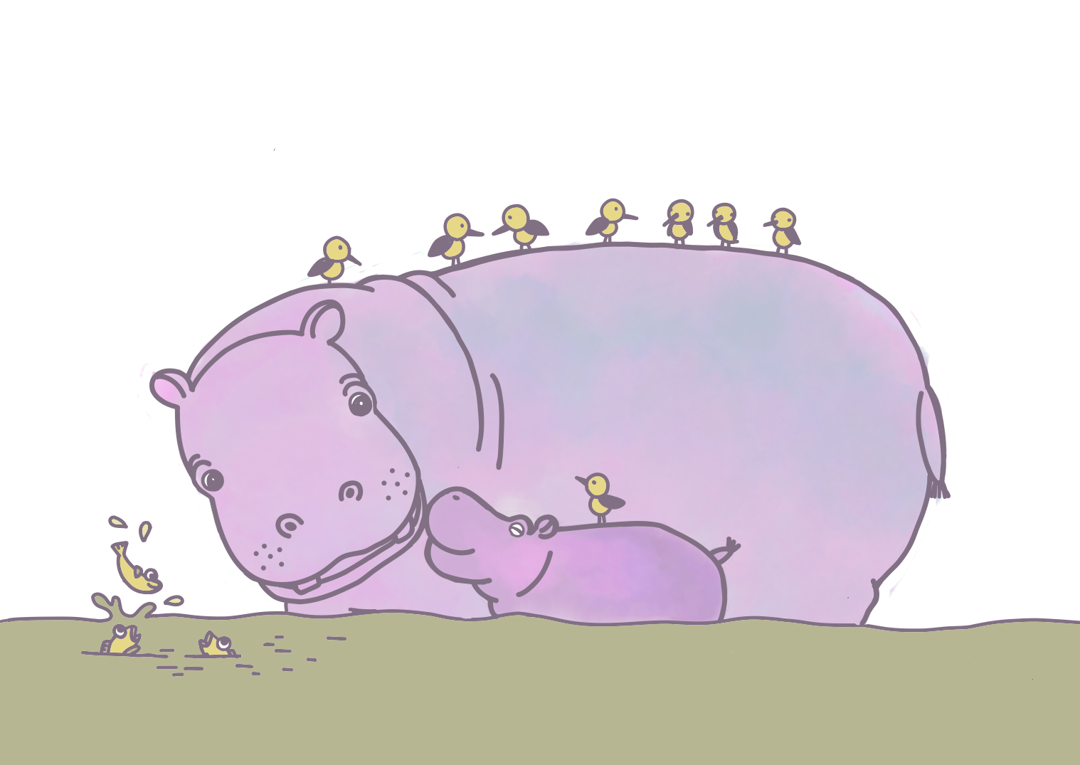 かば 河馬 親子 小鳥 ことり 動物 どうぶつ
