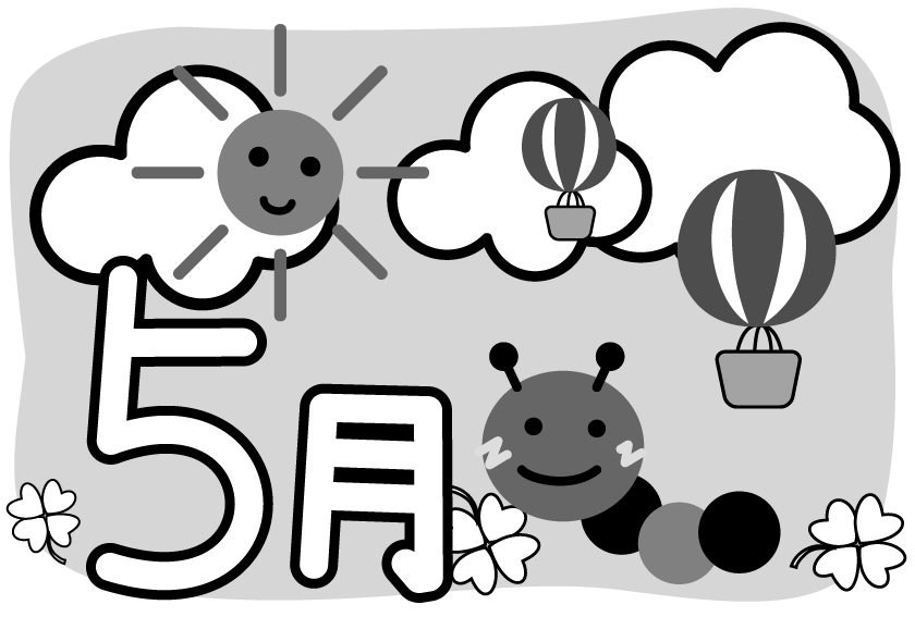 5がつ えんだより お便り 手紙 あおむし 気球 雲 くも クローバー 四葉