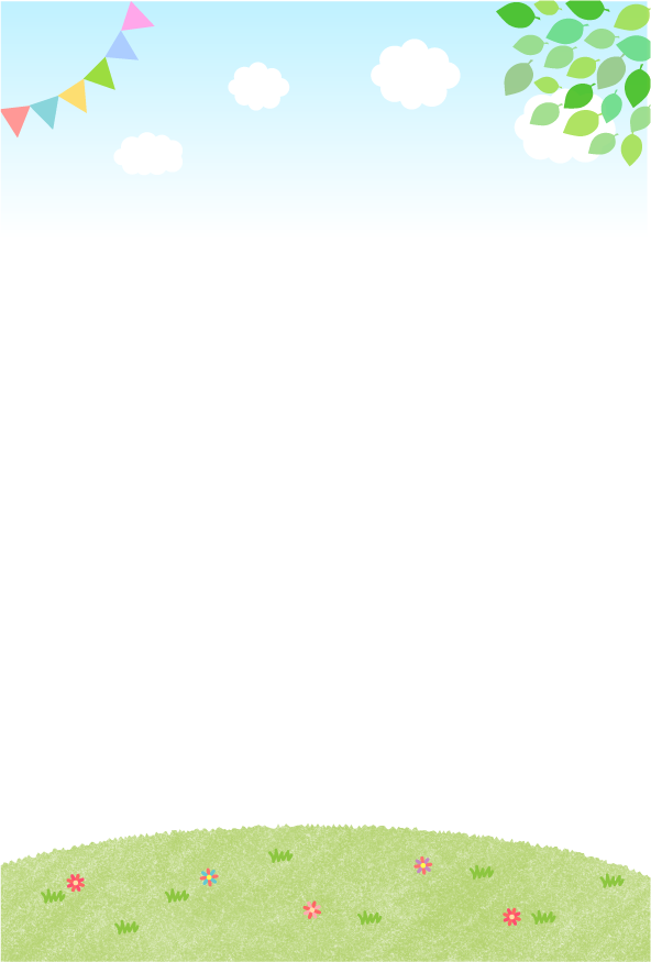 掲示板 手紙 おたより メッセージ 背景 広場 雲 自然 花 草 芝生 葉っぱ ガーランド 旗 はっぱ くも そら はな 外 風景 背景