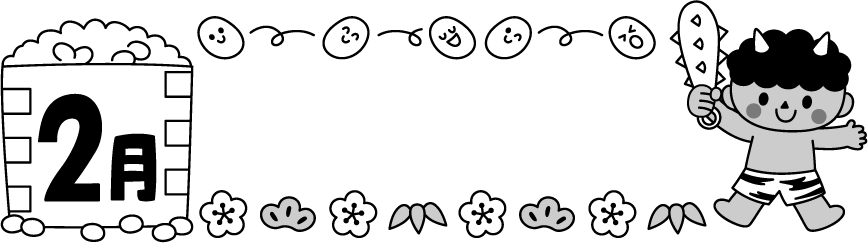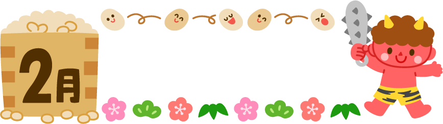 2月 2月 園だより 節分 鬼 おに オニ 赤鬼 金棒 花 梅の花 松 豆まき 豆 まめ 食べ物 桝