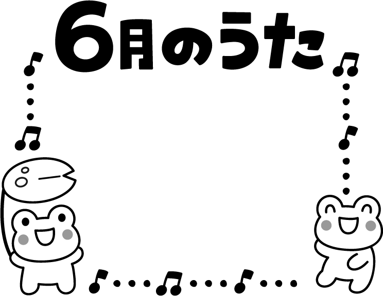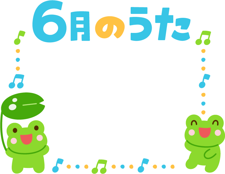 6月 6月 歌 うた 今月の歌 今月のうた 音符 音楽 かえる カエル 蛙 動物 葉 葉っぱ 蓮の葉 6月のうた 6月の歌