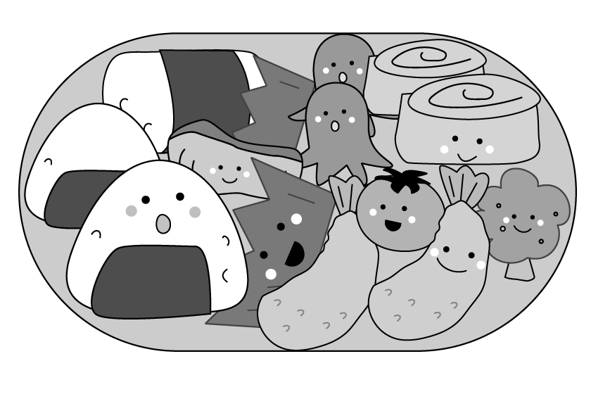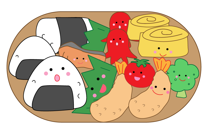 おべんとう 食育 おにぎり ブロッコリー 卵焼き たこさんウインナー ウインナー バラン エビフライ おかず ごはん 遠足 えんそく えんだよりお便り 手紙 プチトマト 鮭 魚